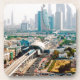 View of city metro line and skyscrapers coaster