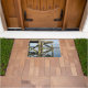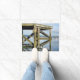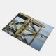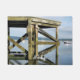 A photographic design of Aberdyfi harbour, the jetty, boats and sea.