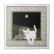 Wine, moonlight and a white cat. Contemporary Art Nouveau and Art Deco influenced poster art graphic. Original art of artist Margaret Loftin Whiting.