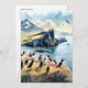 This postcard features a watercolor portrait of Puffins overlooking Vik, Iceland.