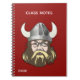 A viking's head decorates the front of this red spiral notebook, with white custom text ready to personalise. Great for school.