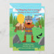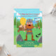 Celebrate your little Viking boy's birthday with this colourful invitation! It features a Viking warrior man with a horned helmet and sword. He is calling all kids to a party in front of a Viking house while holding a balloon. In the back, there's a Scandinavian landscape and a Viking thatched roof house decorated with a skull and dragon heads. In the front, there's a sign that reads PARTY, the boy's wolf pet, and yellow balloons. It's ideal for a Viking-themed birthday party! This Boy Birthday Party invitation is easily customised for your event by adding your details.