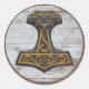 Gorgeous stickers featuring the classic Thor's Hammer design over beautifully weathered wooden Viking shield background.
