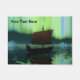 A slightly stylised image of a viking longship sailing at night under the Northern Lights there a couple of icebergs; most of the crew is asleep. Add your own text.