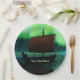 A slightly stylised image of a viking longship sailing at night under the Northern Lights there a couple of icebergs; most of the crew is asleep. Add your own text.