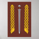 This original illustration by Richard H. Fay depicts a Viking-era sword with a trilobate pommel based on one in the British Museum displayed between two plaitwork bands based on a design from a Viking Age stone sculpture on the Isle of Man.