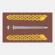 This original illustration by Richard H. Fay depicts a Viking-era (early mediaeval) sword with a trilobate pommel based on one in the British Museum displayed between two plaitwork bands based on a design from a Viking Age stone sculpture on the Isle of Man.
