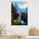Viking town waterfall and mountain | AI Art Poster