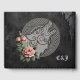 Viking Wolf & Roses. A stylised wolf's head, powerful and majestic. Its gaze is directed to the right, as if pointing the way to a shared future. The wild growl of its mouth embodies the strength and determination of love, while the Celtic knot patterns around it symbolise the eternal connection and unbreakable bond between the two lovers. Soft pink roses with their soft petals and vibrant green leaves flank the wolf in a harmonious way. These floral elements bring a touch of grace and romance to the design