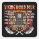 Viking World Tour sticker with viking warrior wearing a helmet and a long beard. Crossed battle axes with dates showing conquest of different countries. For the modern viking warrior, berserker and Norse mythology history fan.