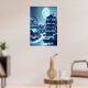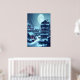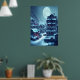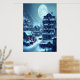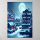A small village in the snowy mountain at night with a large moon on the sky. This is a AI generated art.