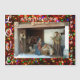 This is called a Village Nativity! The nativity scene with baby Jesus, Mary and Joseph. The background is multi-coloured stars! You can see a villager opening the door to visit Jesus and the Holy Family