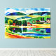 The painting on canvas depicts a picturesque and colourful village perched on a hill, overlooking a serene lake. The vibrant colours and intricate details bring the village to life, creating a visually captivating scene. The reflection of the village in the calm waters of the lake adds depth and tranquillity to the composition. The brushstrokes and textures on the canvas add a touch of texture and movement to the artwork, enhancing its visual appeal. This painting captures the charm and beauty of a village nestled by a lake, inviting viewers to immerse themselves in the peaceful atmosphere and scenic beauty of the scene.