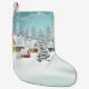 Village winter landscape with snow covered houses small christmas stocking