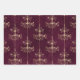 Vintage Paris deep burgundy - wine red and shimmering gold pattern wrapping paper in three different styles including chandeliers, stripes, and ornate frames with roses.