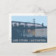 Postcard featuring the bridge that connects San Pedro to Long Beach, the Vincent Thomas Bridge graphic artwork from San Pedro's view. This colourful graphic of this famous bridge is an original item that you will find no where else.