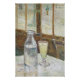 "Still Life with Absinthe" by Vincent van Gogh is a poignant exploration of the mysterious and intoxicating qualities associated with absinthe, a potent liquor popular during the late 19th century. The painting features a glass of absinthe placed on a table alongside a carafe, sugar cube, and slotted spoon, which were traditional tools used to prepare the drink. The composition is chraacterised by Van Gogh's signature use of bold, expressive brushstrokes and a limited colour palette dominated by greens and whites, which accentuate the ethereal quality of the spirit. The background is kept simple, allowing the viewer to focus on the central object of interest—the absinthe—and the emotions it evokes.