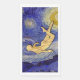The blue night sky is filled with swirling clouds, stars, and a bright crescent moon.