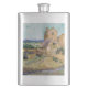 The product is a good size and came exactly as it was pictured. The lid is not attached to the flask, which could be dangerous on drunken nights... The print came out surprisingly well and looks very sharp. Would definitely recommend.