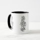 This mug is decorated with a beautiful illustration about a clef covered in vines and flowers.