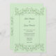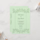 Vines of White flowers meet to form a heart trellis on Mint Green flat card invitation. Simple Elegant floral Wedding Invitation.