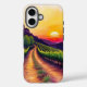 Bismillahir Rahmanir Rahim. This beautiful watercolor-style design captures the serene beauty of a vineyard at sunset. The art features rows of lush grapevines leading the eye down a rustic dirt path towards a vibrant, colourful sky. The warm, inviting colours of the sunset contrast beautifully with the deep purples of the hills and the bright greens of the vines. This peaceful landscape is perfect for wine lovers, travelers, or anyone who enjoys the rustic charm of the countryside.