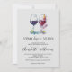 Vino before vows bridal shower invitation with 2 elegant watercolor wine glasses and a red background on the back that can be changed to any colour by clicking the button to edit the design.