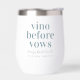 Get the party started at your wine country bachelorette weekend with these cute custom wine tumblers. Design features "vino before vows" in dusty teal blue classic serif lettering with your event or occasion name beneath in handwritten cursive script. Personalise with the location name and/or the year beneath.