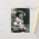 Lovely young girl decorated with hand-coloured/tinted flowers on this reproduction vintage postcard