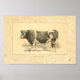 Vintage 1888 print of Guernsey Bull. The art print has the faded antique patina you would expect on an illustration over 125 years old.