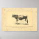 Vintage 1888 print of Mr. James Blyth's Jersey Cow "Longueville Belle". The art print has the faded antique patina you would expect on an illustration over 125 years old.