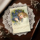 • Passed down from a family collection started by my great-grandfather in England, this digital illustration captures the timeless beauty of a turn-of-the-century postcard. This artwork features a young girl with flowers woven into her hair, holding a large bouquet of blue violets.