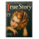Capture the allure of vintage storytelling with this exquisite notebook featuring an authentic 1930s True Story magazine cover! This stunning design showcases a gorgeous auburn-haired beauty with cascading curls against a rich emerald background - a masterpiece of golden age illustration that epitomises classic glamour.