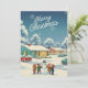 Celebrate the holidays with this nostalgic 1950s Christmas card featuring children building a snowman in a classic mid-century neighborhood. With retro cars, cozy homes, and joyful smiles, it captures the heart of vintage Christmas art. A perfect card to send merry Christmas and Happy New Year wishes!