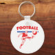 Vintage 1950s style Football player logo of a famous football player kicking a leather ball.
