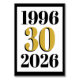 The 1996 • 30 • 2026 design blends classic black typography with rich gold accents for a polished, modern look that feels both nostalgic and elevated. Place these name and table numbers on the table for guests to easily find their seats.