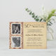 Beautiful 50th Wedding Anniversary Party Invitations with framed inserts for two photos on rustic vintage retro simulated parchment background, and damask trim. Upload your photos and add the names, date, and details. Change the text to easily customise it for other special occasions and happy milestone celebrations -- 25th, 30th, 40th, 45th, 60th, 65th, 70th anniversary parties, surprise party, weddings, save the date, or any unique event. Size shown: 4.5 x 6.25. Click Customise It to change size and paper finish options.