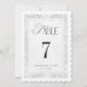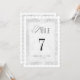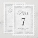 This elegant white lace imitation wedding table number features a romantic scalloped edge and delicate vintage lace design for a timeless reception look. Designed in a classic 5x7 format, it’s perfect for a formal wedding, church ceremony, black tie celebration, or traditional event. The soft gray palette and refined typography complement antique, classic, and old world inspired table settings beautifully.**Please note no actual lace is used in making of this item**