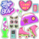 Stickers with millennials' "Made in the 80s" items: quotes, cassette, cassette player, roller skates, funky sunglasses, hand-held game, lava lamp, and candy.