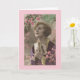 A vintage tinted photograph of a young woman sitting in a garden while reading a book. From the book's cover, it looks to be a romance novel. She clutches it over her heart and sighs as she dreams of having a romance like the lovers in the book. The message inside the card is: "I want a fairytale ending."