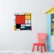 Composition with Large Red Plane, Yellow, Black, Grey, and Blue (1921) by Piet Mondrian is a vintage abstract fine art composition that is asymmetrical with one large dominant block of colour, red, which is balanced by the distribution of smaller blocks of yellow, bluish grey, and white. The composition has thick, black horizontal and vertical lines that delineated the outlines of the various rectangles of colour.
