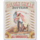 Vintage advertisement for Golden Sheaf Bitters featuring goddess Columbia with an American flag, bald eagle, and liberty cap at the centre. Sheaves of grain and blank banners for text at left and right.