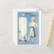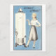 This postcard is a reproduction of a vintage 1950s advertisement for a water heater, with a woman saying, "Hot water? A plenty!"