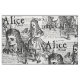 This design has a collage of vintage black and white illustrations and text from the classic children's book Alice's Adventures In Wonderland.