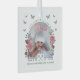 Beautifully designed vintage Alice in Wonderland-themed birth announcement glass ornament. We've meticulously restored the iconic Alice in Wonderland vintage white rabbit & Alice illustration by hand sketching and bringing it to life with beautiful watercolor undertones. Features our hand-drawn watercolor and sketch-style rose blossom photo frame arrangement for you to add your own image inside the arch photo shape. Customise with the baby's name, date of birth, and birth stats. Designed by Moodthology Papery