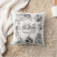 Vintage Alice In Wonderland Collection of Images Throw Pillow. Features a montage or collection of drawings and pictures in black and white, from the classic book by Lewis Carrol, Alice in Wonderland. The front scenes and images include the Alice and the Cheshire cat, Mad Hatter, The White Rabbit, the Tea Party, the Card Men under the Rose Bush, and Alice Finding the Door. On the back is Alice and the White Rabbit. NOTE: If you would like to have the back of pillow just plain without the image, you can delete that picture. A whimsical fairy tale pillow..
