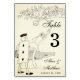 A vintage, elegant table number for an Alice in Wonderland wedding theme.
