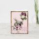 John Tenniel's illustration of the white rabbit in the vintage Alice in Wonderland in the storybook fairytale. He wears heart card clothing, teal collar, blowing a trumpet and holding a scroll with green gem. Burgundy and white floral roses at top right. Pink heart background, glitter pink lace at bottom, and antique gold border.