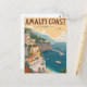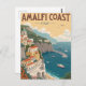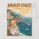 Dream of the Italian Riviera with this gorgeous vintage-style travel poster postcard. This stunning illustration captures the iconic, dramatic cliffs and colorful cascade of houses of the Amalfi Coast, Italy. Featuring boats on the shimmering Mediterranean Sea and classic coastal architecture, this design evokes a charming retro tourism feel. Perfect for sending a scenic greeting, collecting as a piece of Italian travel art, or framing as elegant, wanderlust-inspired wall art. Ideal for lovers of Italy, coastal towns, summer vacations, and classic retro posters.