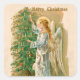 This Christmas / Holiday rounded square sticker has an Angel putting a candle on a Christmas tree.